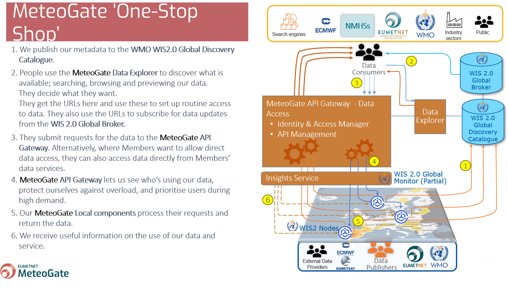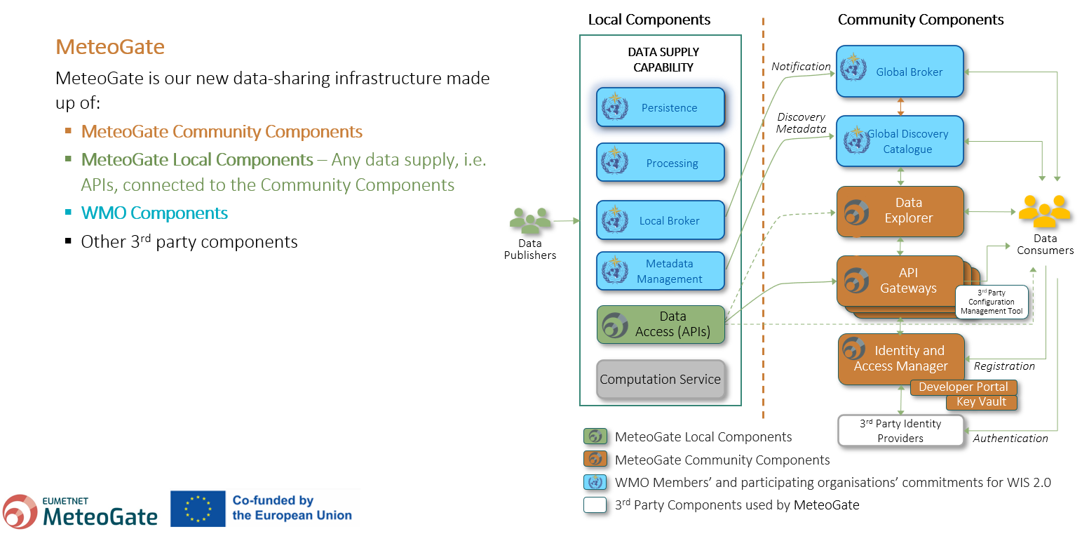 - Data Access to expose data to MeteoGate users using interactive APIs through the API Gateway