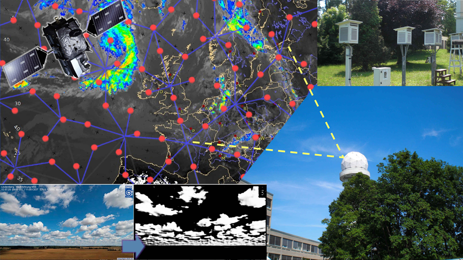 The E-AI programme will enhance the value of earth observations, gridded observational datasets, model fields and further datasets by making them AI-ready. The goal is to define and prepare a collection of datasets and develop appropriate interfaces and tools to make these data easily available for development, retraining, and operational use of AI/ML methods. Image sources: ESA (European Space Agency), EUMETSAT, DWD, Reinhardt et al. (https://doi.org/10.1175/AIES-D-22-0025.1) published under CC BY-SA 3.0 IGOData Curation