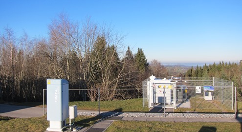 The aerosol and cloud network consists of more than 450 automatic lidars (light detection and ranging sensors) and ceilometers. The main purpose of the latter is to measure the height of the cloud base, which is important for planning safe navigation in aviation and understanding atmospheric stability and convection that can result in severe weather or favourable conditions for high-air-pollution episodes. The diverse applicability of ceilometer data explains the high density of the ceilometer network. The automatic lidars and ceilometers are centrally calibrated to create profiles showing how much light is scattered back by particles. That light is related to the size and concentration of particles in the atmosphere. Appropriate calibration techniques enable the estimation of the mass concentration of aerosols and their impact on the radiative transfer in the atmosphere. Ceilometer and automatic lidar at Hohenpeissenberg, Germany. Aerosol and Cloud Network