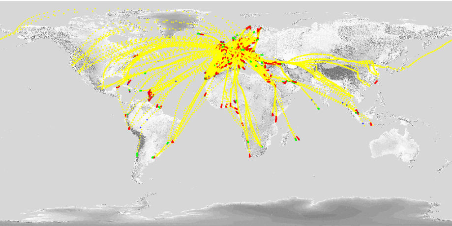 The coverage for the EUMETNET-derived data network from the European Meteorological Aircraft Derived Data Centre for a typical day is shown on the map below. This shows how tens of millions of observations are collected daily, with the highest concentrations indicated by the red colours.Aircraft-derived Data Coverage